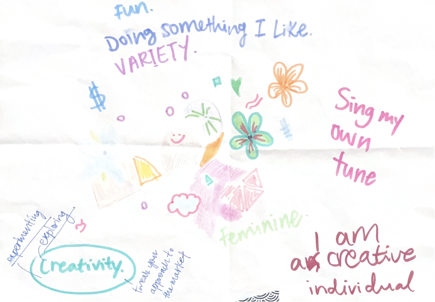 I drew some doodles and wrote 3 main key phrases - ‘’Fun’’, ‘’Doing something I like’’, ‘’VARIETY’’.