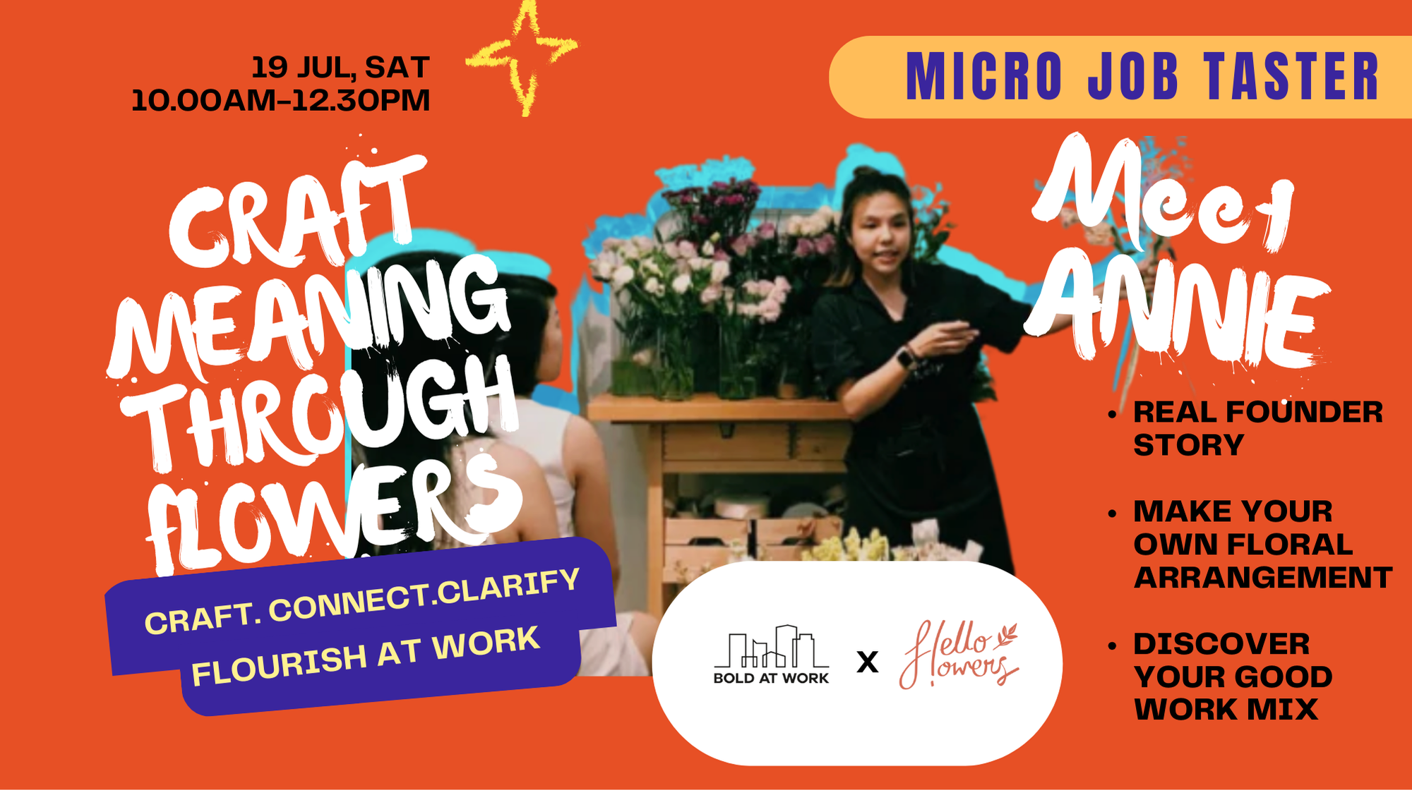 In this session, step into the world of slow, intentional creation with Annie — founder of Hello Flowers!, a floral social enterprise that turns blooms into moments of connection and healing. You’ll create your own mini floral arrangement and hear Annie’s story of transitioning from social work to floral artistry. Along the way, we’ll explore how beauty, purpose, and sustainability can come together in a handcrafted career.